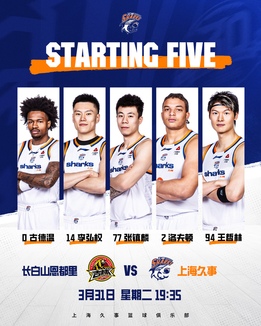 本场比赛,上海男篮派出王哲林、张镇麟、李弘权和双外援古德温、洛夫顿的先发阵容。首节两队形成均势,上海男篮仅以26比23领先。