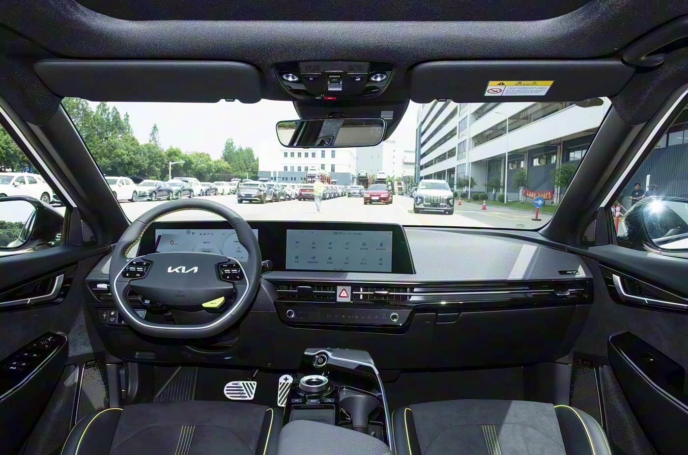 进入车内,起亚EV6 GT以简洁克制的设计语言营造出兼具科技感与豪华感的座舱氛围。双12.3英寸曲面全景显示屏贯穿中控台,搭配纯电车型专属的全新GUI设计,视觉效果流畅且信息显示清晰。磨砂质感的集成式控制面板提供娱乐信息与空调两种主题,物理按键的最小化布局让中控台更显整洁,电子旋钮换挡系统则提升了换挡便捷性与科技感。内饰大量采用环保材质,座椅面料采用环保工艺制成,纤薄轻巧的设计既时尚舒适,又能节省车内空间,GT专属的黑色翻毛皮运动桶形座椅搭配荧光绿缝线,进一步强化了运动氛围。空间实用性方面,前排采用贯通式设计,后排纯平地板有效提升了中间乘客的乘坐舒适性;后排座椅支持60:40比例放倒,放倒后可拓展出宽敞的储物空间,最后来看动力方面,新款起亚EV6 GT搭载双电机四驱系统,最大功率448千瓦(比旧款提升18千瓦),最大扭矩740牛·米(与旧款一致)。电池部分,该车搭载84千瓦时电池,官方纯电续航里程355 公里(测试工况未知)。对比国内现款起亚EV6 GT,搭载容量为76.4千瓦时的电池组,CLTC纯电续航里程555公里。大家对此车型有什么看法欢迎下方评论,感谢关注!