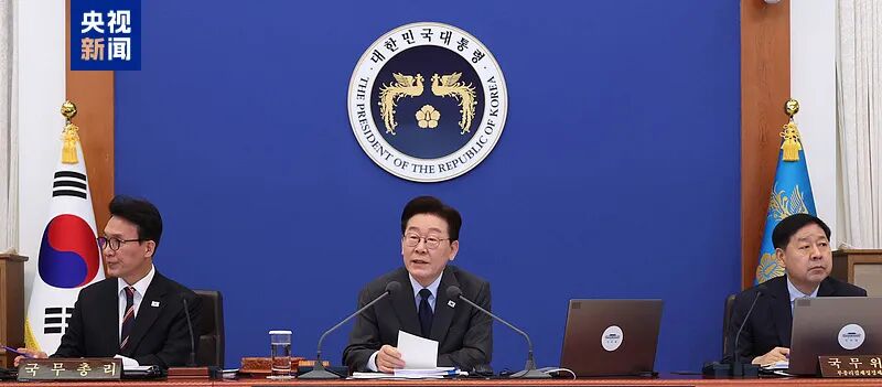 韩国总统李在明(中)24日在青瓦台主持国务会议