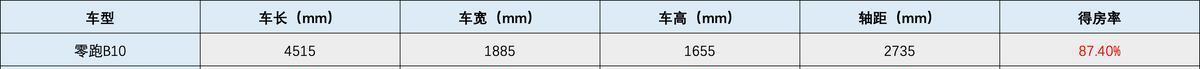 很显然,零跑B10在“得房率”这一块稳稳赢了一把,达到了87.4%,即便放在同级别车型中,也是相当可圈可点的表现,自然无须担心车内的实际乘坐空间。